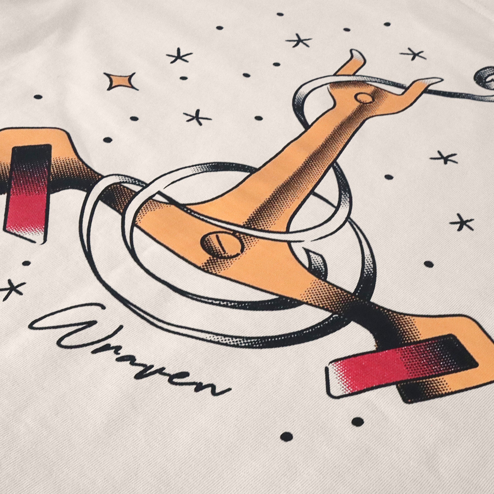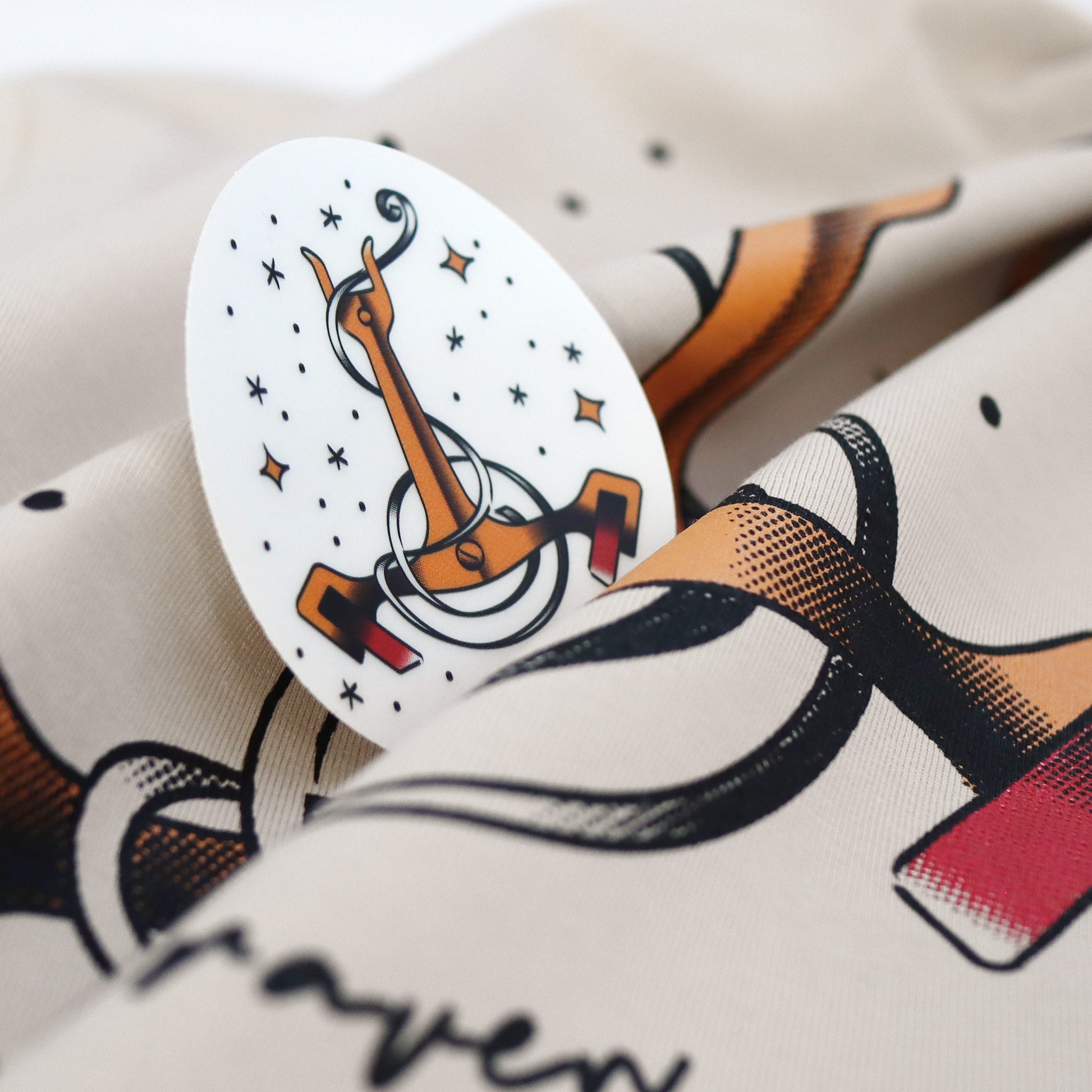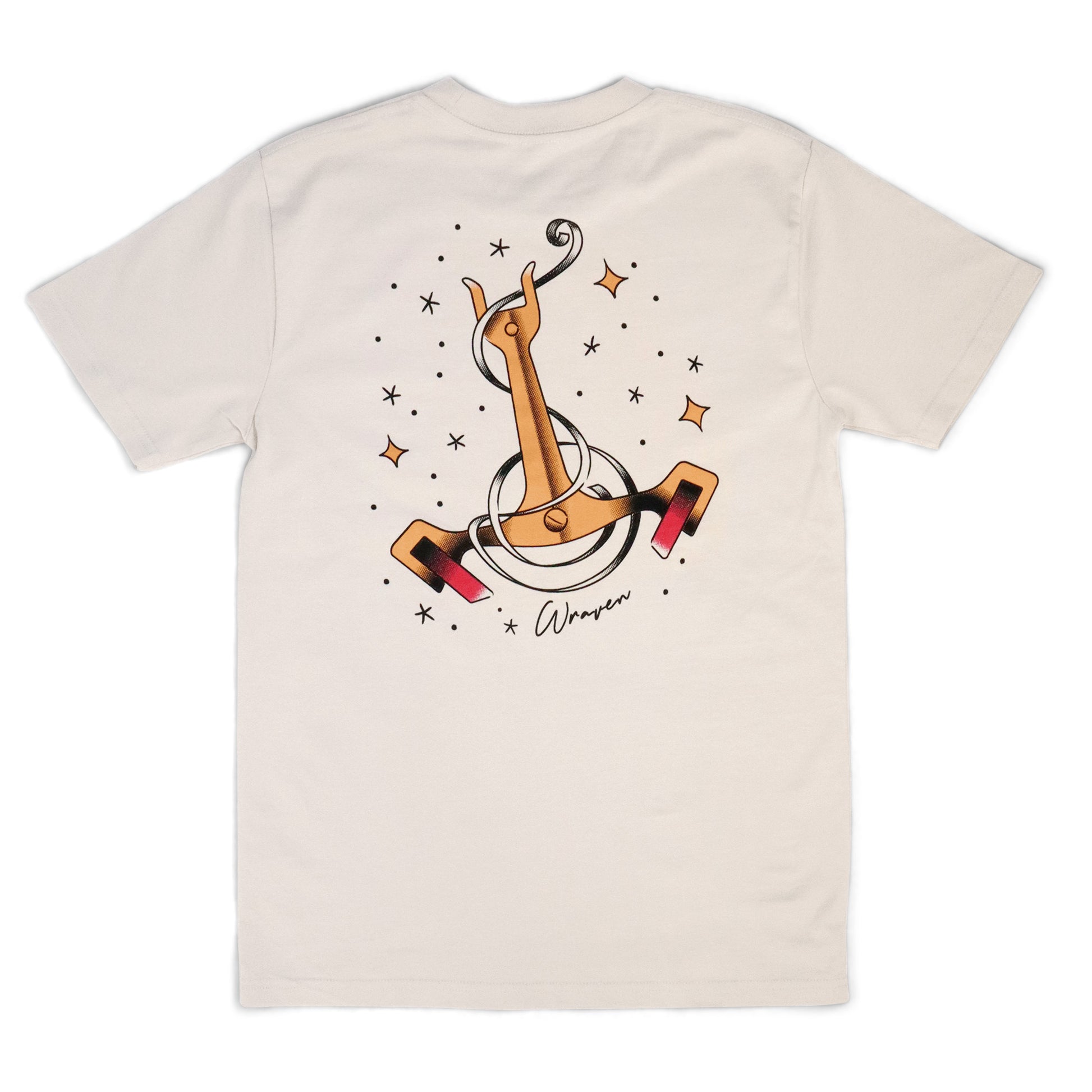 The back of this tee features a vintage tattoo styled pallet fork and mainspring.